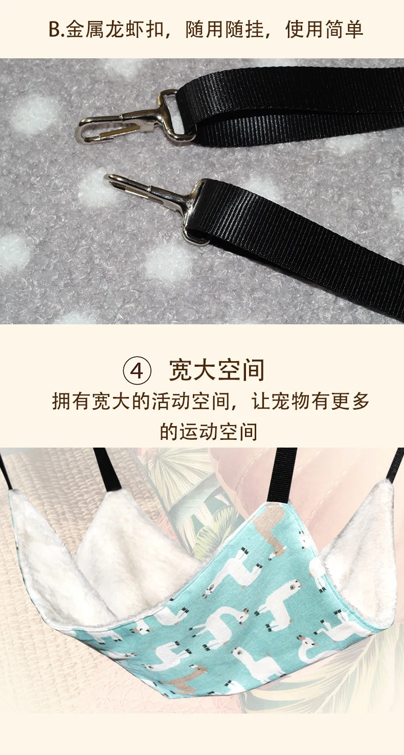 Cat Hanging Hammock with Adjustable Straps Double-Sided Pet Cage Hammock Hanging Bed Resting Sleepy Pad for Small Animals Pets