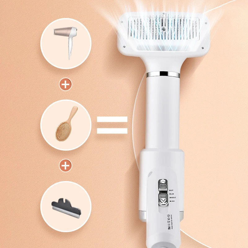 Dry and groom your pet at the same time with this Pet Blow Dryer Comb. Designed for both cats and dogs, it combines a dryer and brush in one convenient tool. The multi-speed settings allow you to adjust airflow based on your pet’s needs. Low-noise technology helps keep pets calm during grooming sessions. The warm airflow dries fur quickly while the comb removes loose hair and tangles. Gentle bristles ensure a comfortable grooming experience without irritating the skin. Perfect for use after baths or rainy outdoor walks. Lightweight and easy to handle for effortless grooming at home. Durable design ensures reliable performance over time. Make grooming faster, easier, and more comfortable with this all-in-one drying solution. 🐶🐱💨