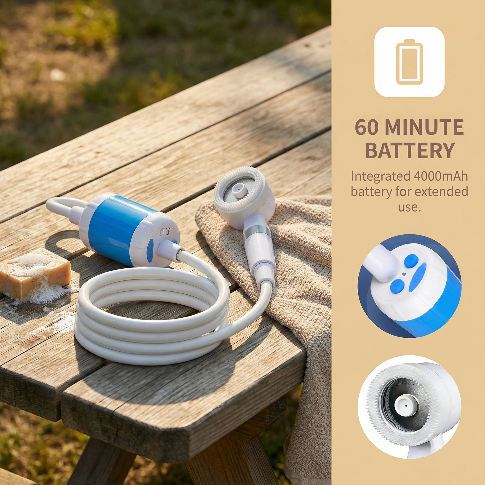 Stay clean anywhere with this Portable Camping Shower Pump. Designed for outdoor adventures, it provides a convenient way to shower while camping or hiking. The rechargeable battery delivers steady water flow for quick and easy washing. Simply place the pump in a bucket or water container to create an instant shower. The handheld shower head makes it easy to rinse off dirt, sand, and sweat. It’s also perfect for washing pets after outdoor activities. The compact and lightweight design makes it easy to pack and carry. Durable materials ensure reliable performance during travel and outdoor use. It’s great for camping trips, beach days, pet cleaning, and even car washing. Enjoy a refreshing rinse anytime, anywhere with this versatile portable shower system. 🚿🏕️🐶